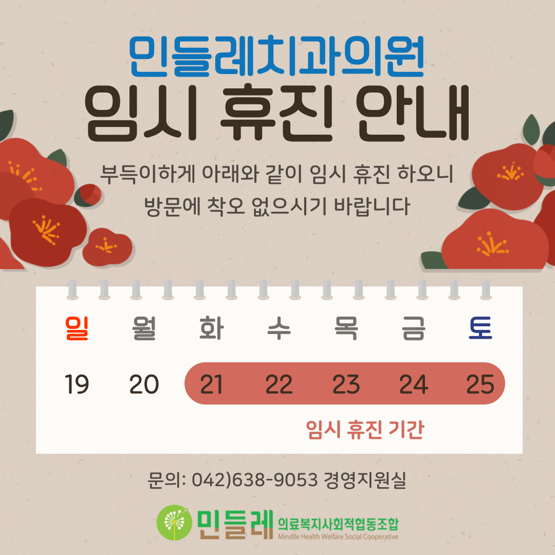 민들레치과의원 임시 휴진 상세내용