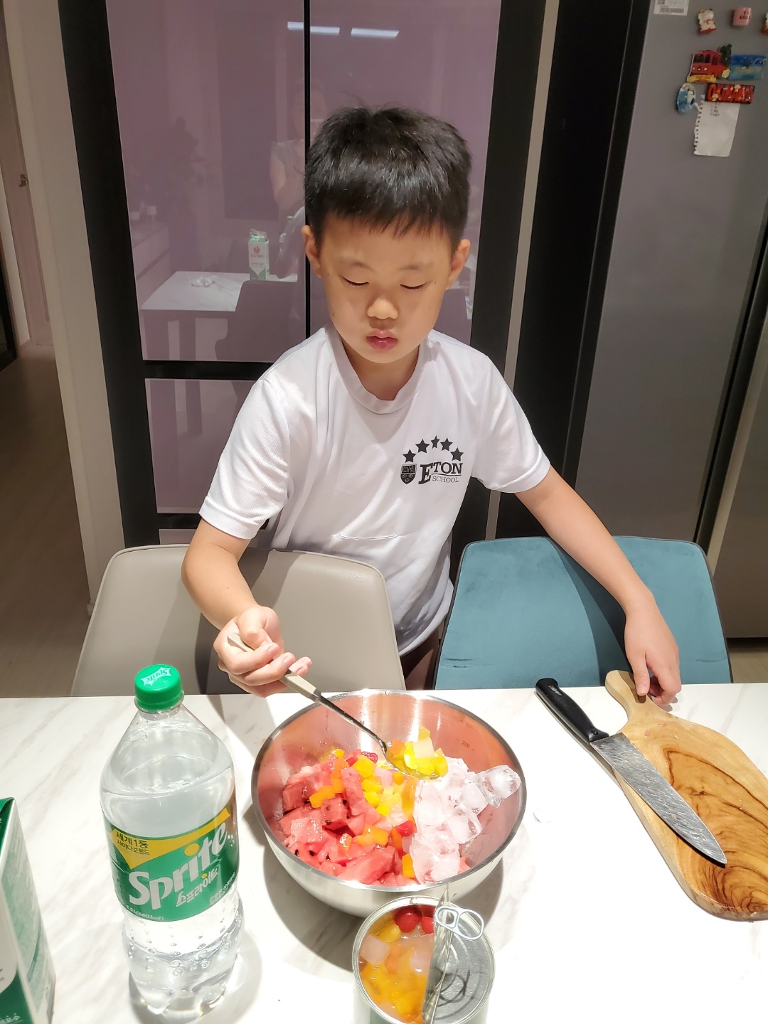 가장 덥다는 중복입니다. 아이들과 함께 시원하게 먹을 수 있는 수박화채 만들기 시간을 가졌습니다. 같이 모여서 하면 좋았겠지만 각자 집에서 아이들과 함께 만들었습니다. 아이들은 사이다만 넣은것이 더 맛나다고 하네요. 어른들은 우유를 약간 넣은 것에 한표를 주었습니다. 더운 여름 모두 건강하게 나길 기원합니다.